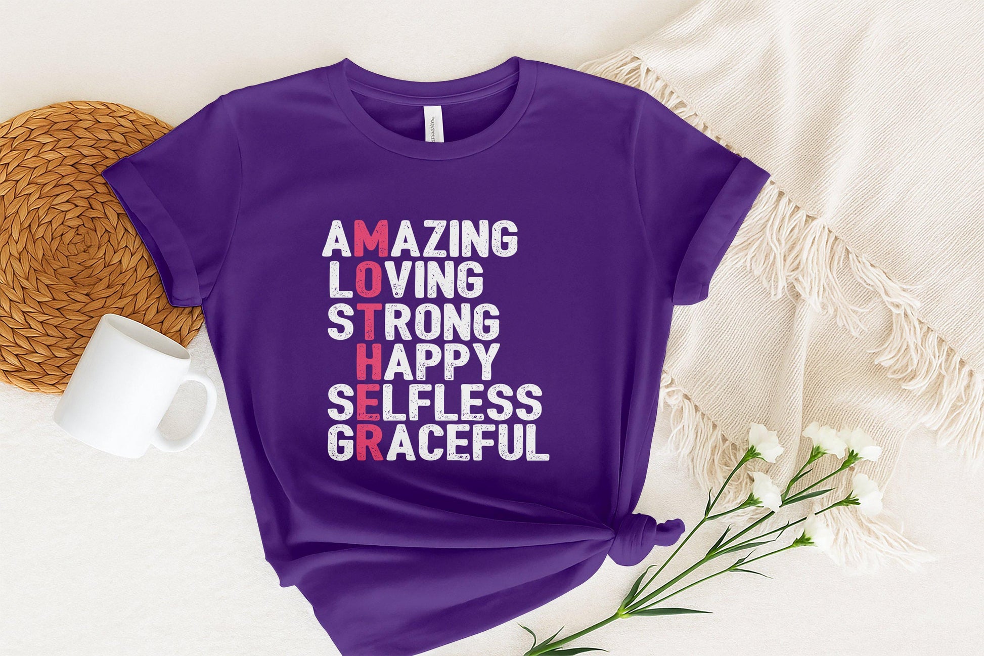 Amazing Mother T-Shirts, Loving Strong Happy Design, Gift for Mom, Mothers Day, Selfless Graceful T Shirts, Best Mother T Shirts