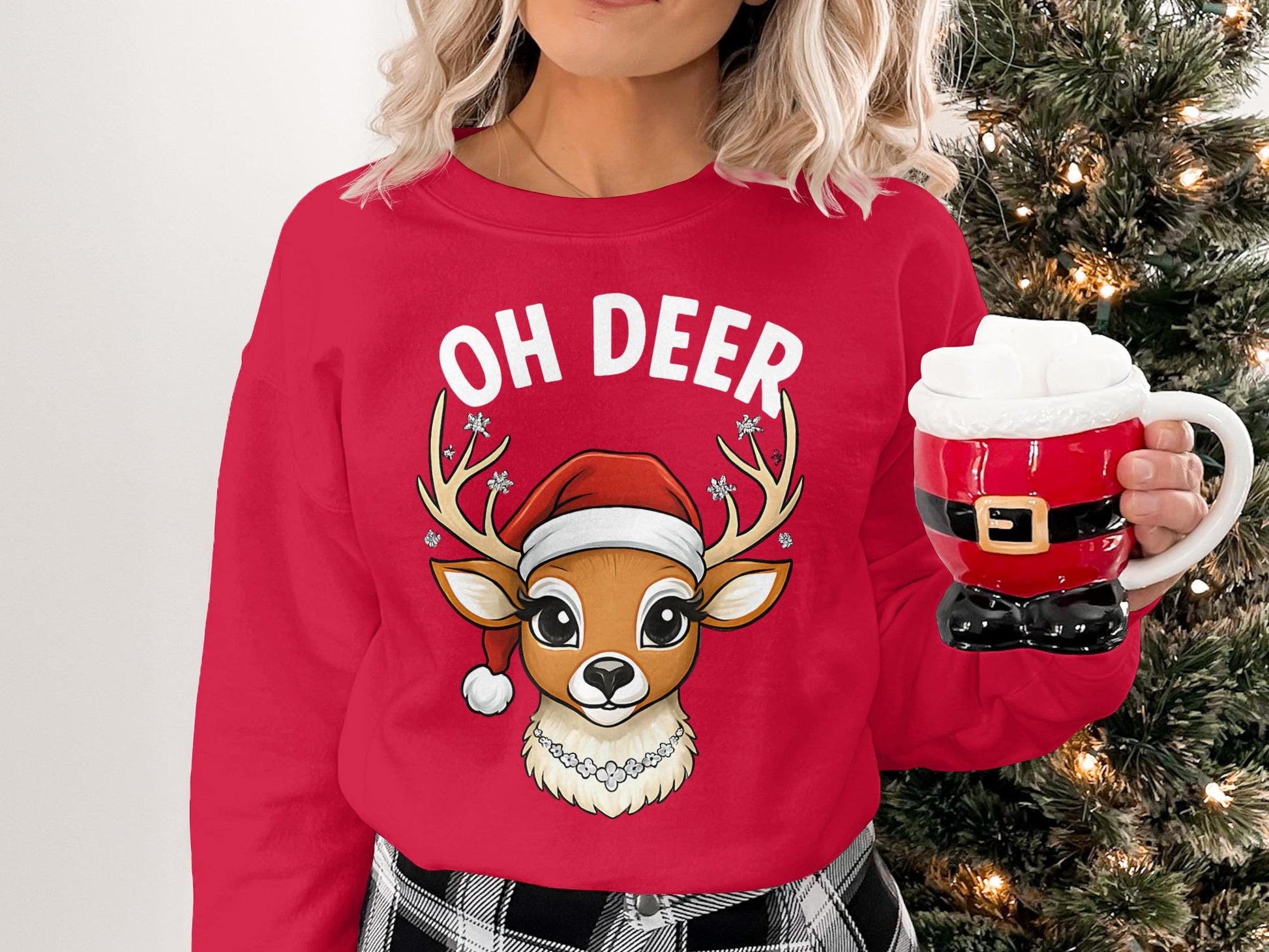 Get ready for the holidays with this adorable Christmas deer T-Shirt! 🦌🎄 Featuring a cute cartoon reindeer wearing a Santa hat and a festive snowflake design on its antlers, this tee is perfect for spreading holiday cheer.🎁 This unique design is sure to bring smiles. This T-Shirt is a must have for the season.