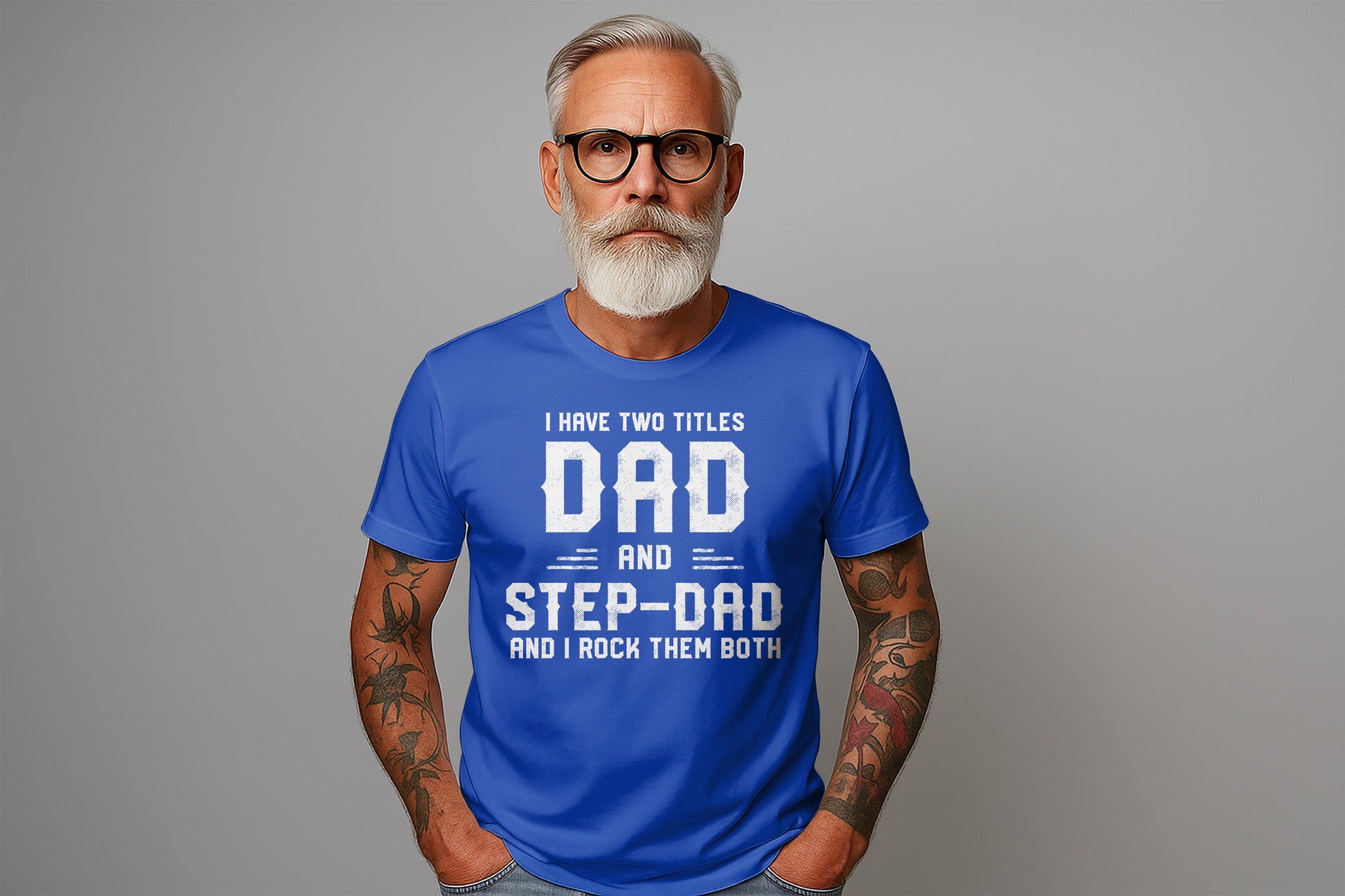 Celebrate the amazing Dads and Stepdads in your life with this awesome T-Shirt! ๐จโ๐งโ๐ฆShow your appreciation for Fathers Day or any day with this humorous and heartfelt design. "I Have Two Titles Dad and Step Dad And I Rock Them Both". This is the perfect gift for the Dad who does it all!
