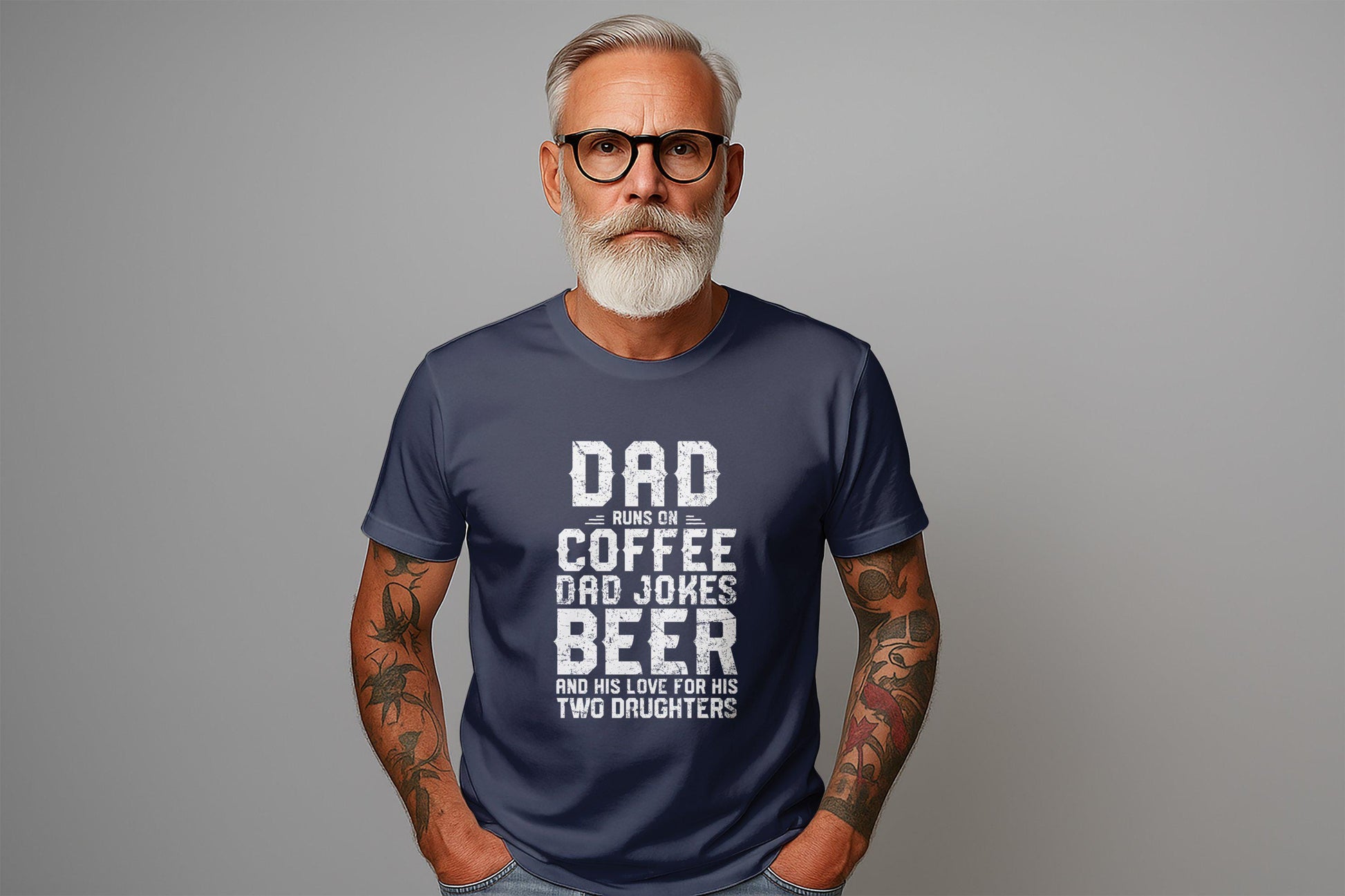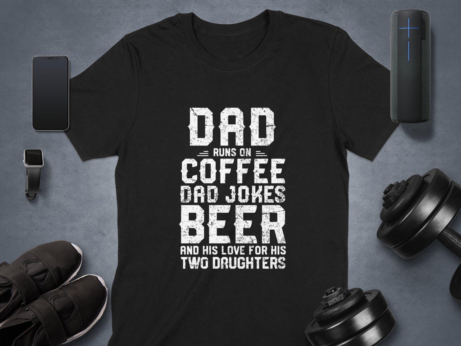 Dad Runs On Coffee, Dad Jokes, Beer, Two Daughters T-Shirts, Father Day, Dad Gift, Funny Dad, Dad of Girls T-Shirts