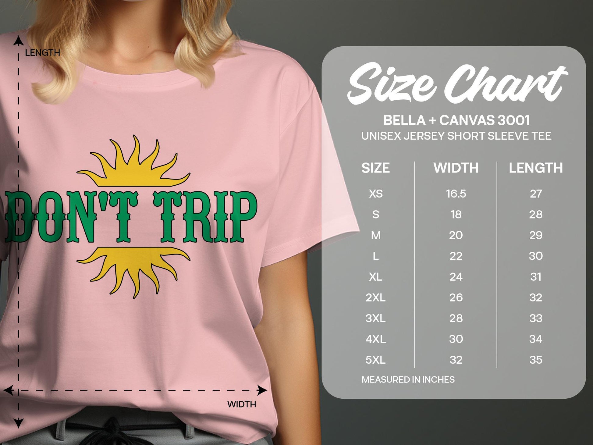 Get ready to spread some good vibes with our "Dont Trip" T-shirt! This fun and quirky design is perfect for anyone who loves a touch of humor and positivity in their wardrobe.🌞 Whether you're heading out on vacation, hanging out with friends, or just want to make a statement, this tee is sure to turn heads and bring a smile to everyone's face. 😄