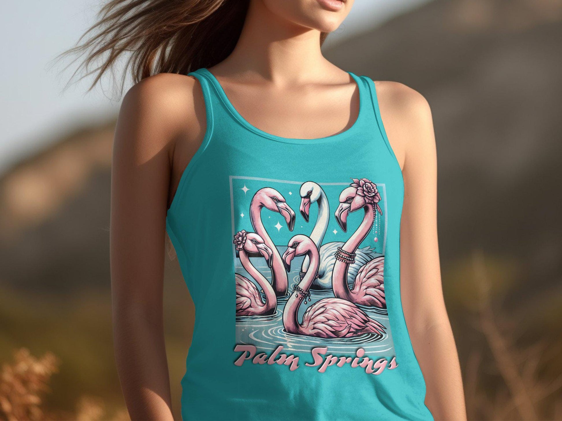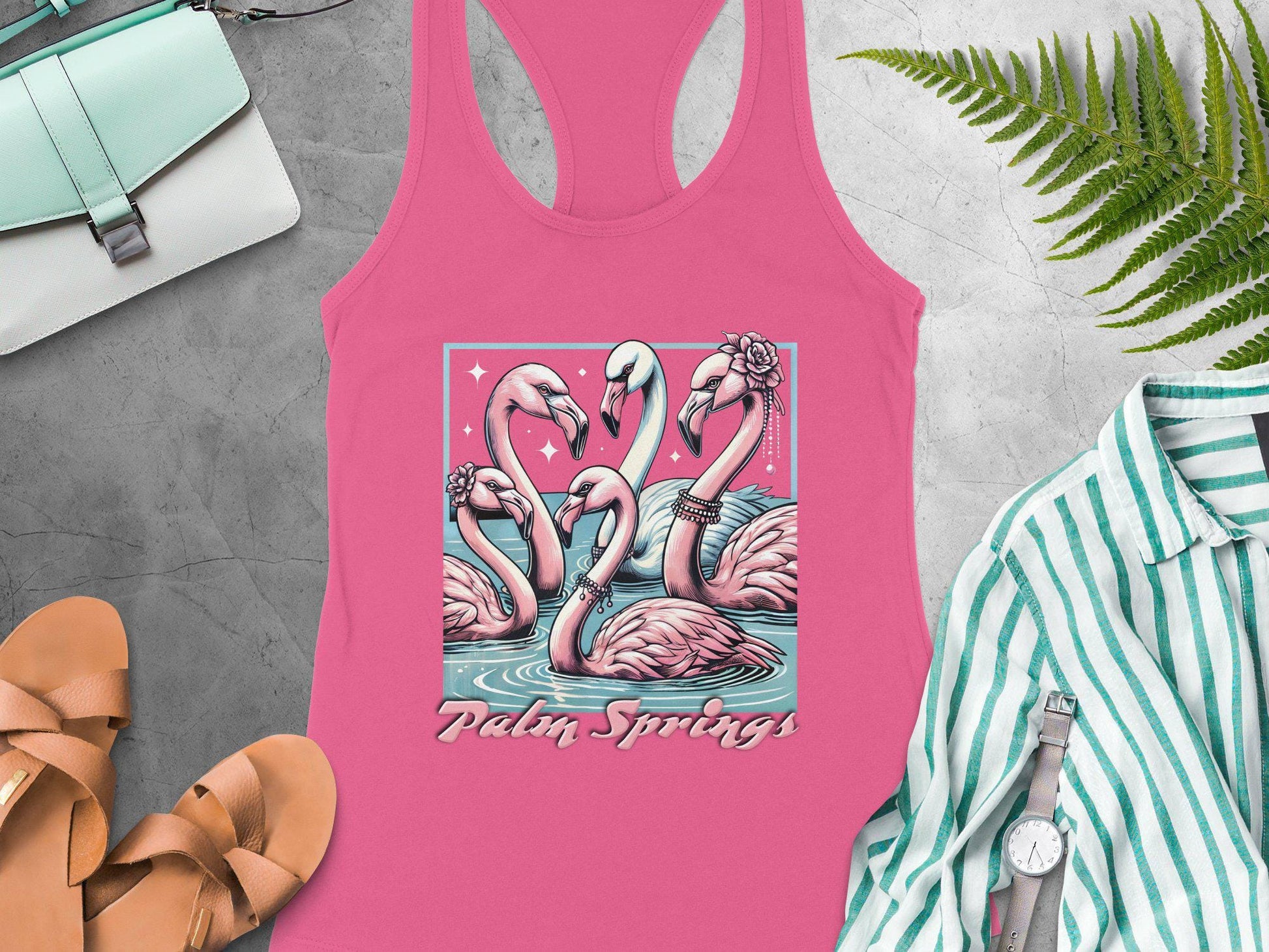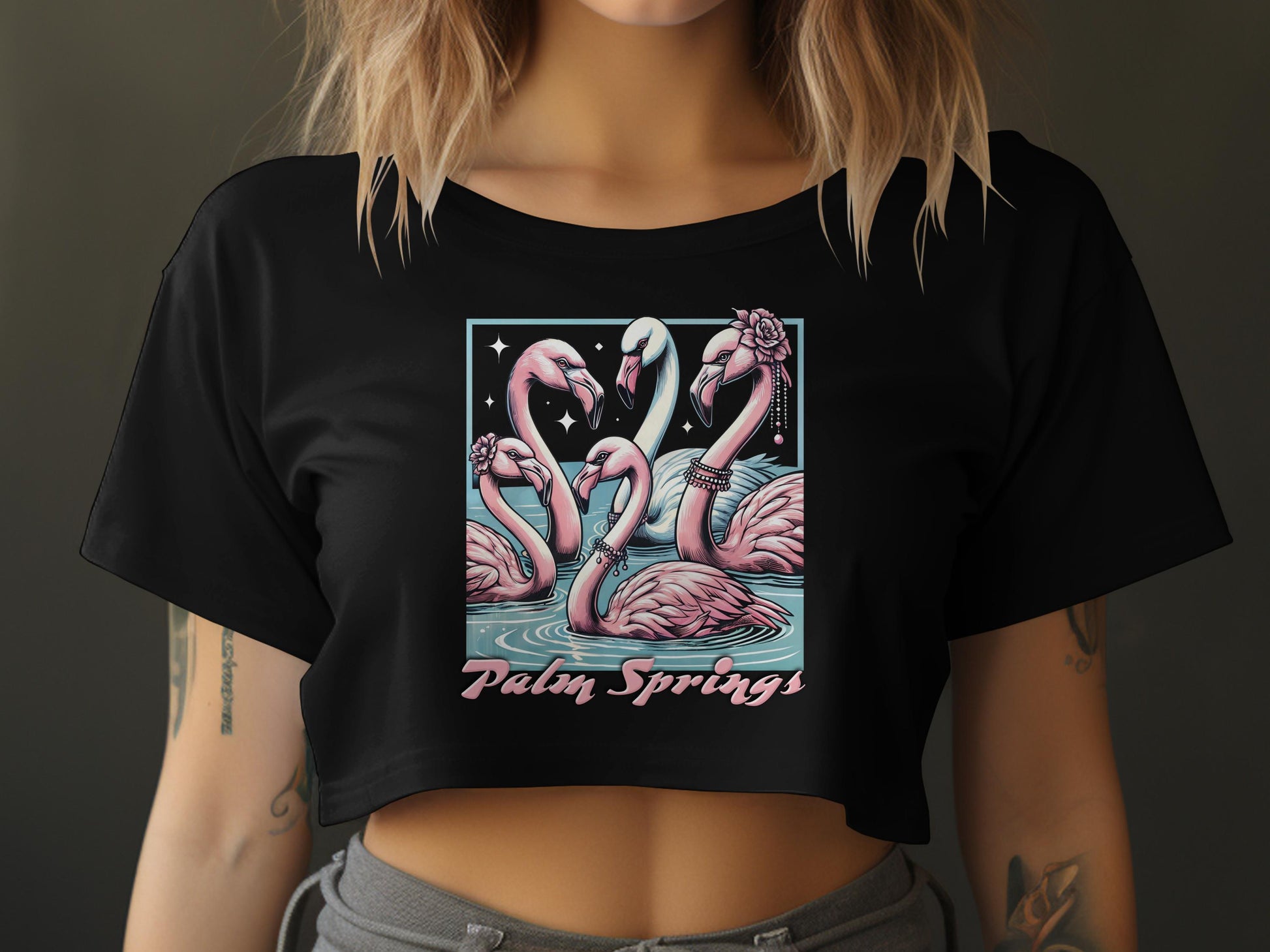 Flamingle with the Girls pool party style! Embrace the tropical vibes with this Flamingo Graphic Tee featuring a Palm Springs design. Perfect for Bachelorette parties, beach lovers and those who adore artistic bird graphics. Great for summer casual wear or as a unique gift idea for birthdays and special occasions. Stay stylish and comfortable in this trendy shirt.