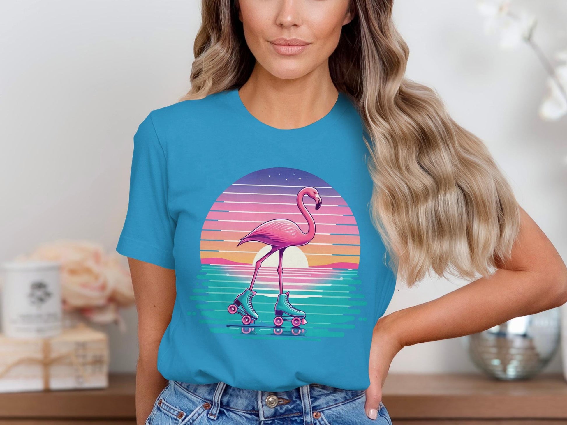 Flamingo Roller Skate T-Shirt, Retro Sunset Graphic Tee
