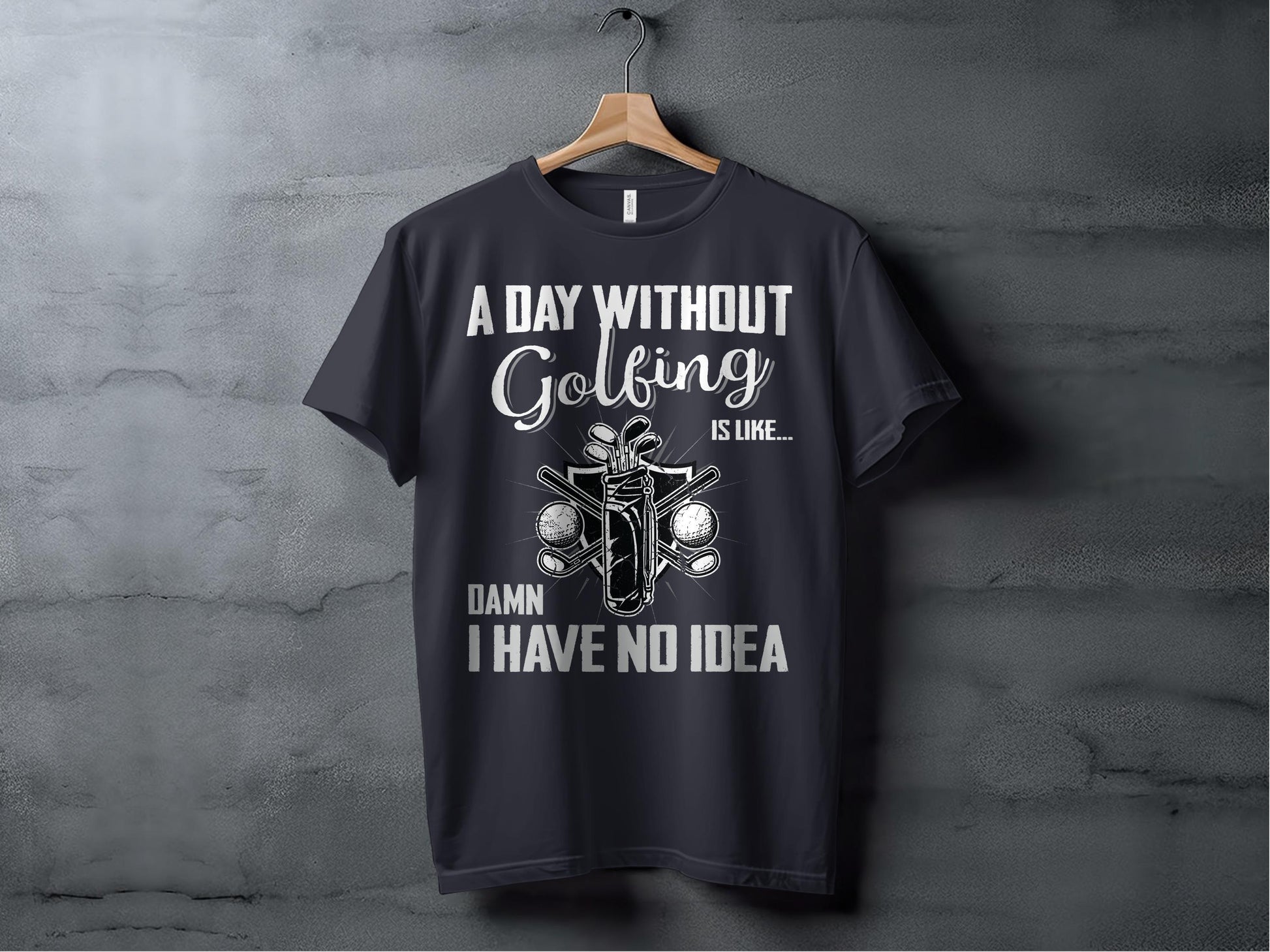 This T-shirt showcases a humorous design, with bold typography that reads "A Day Without Golfing Is Like... Damn I Have No Idea." It's a great conversation starter on the golf course or at the clubhouse. 🏌️♂️