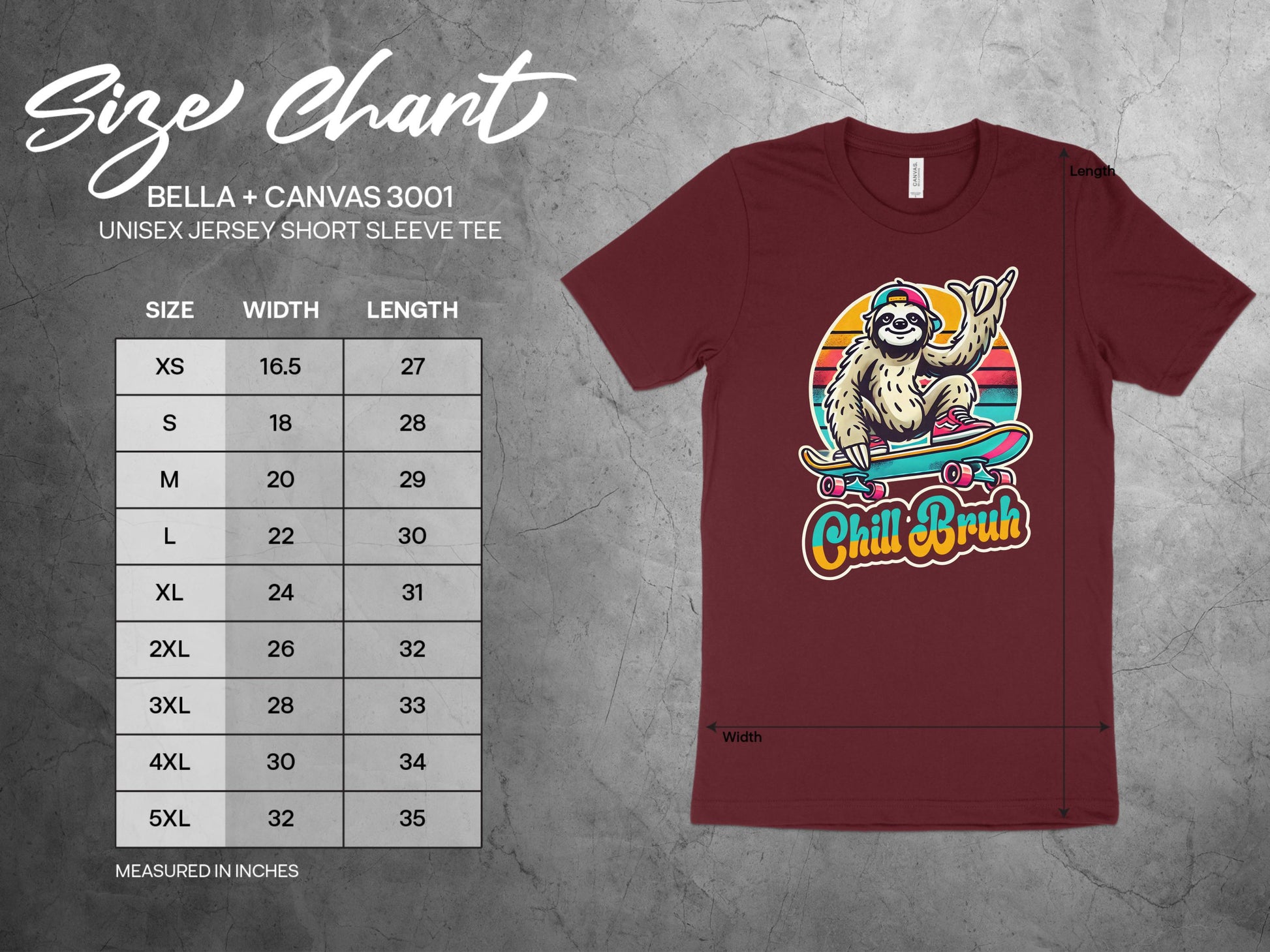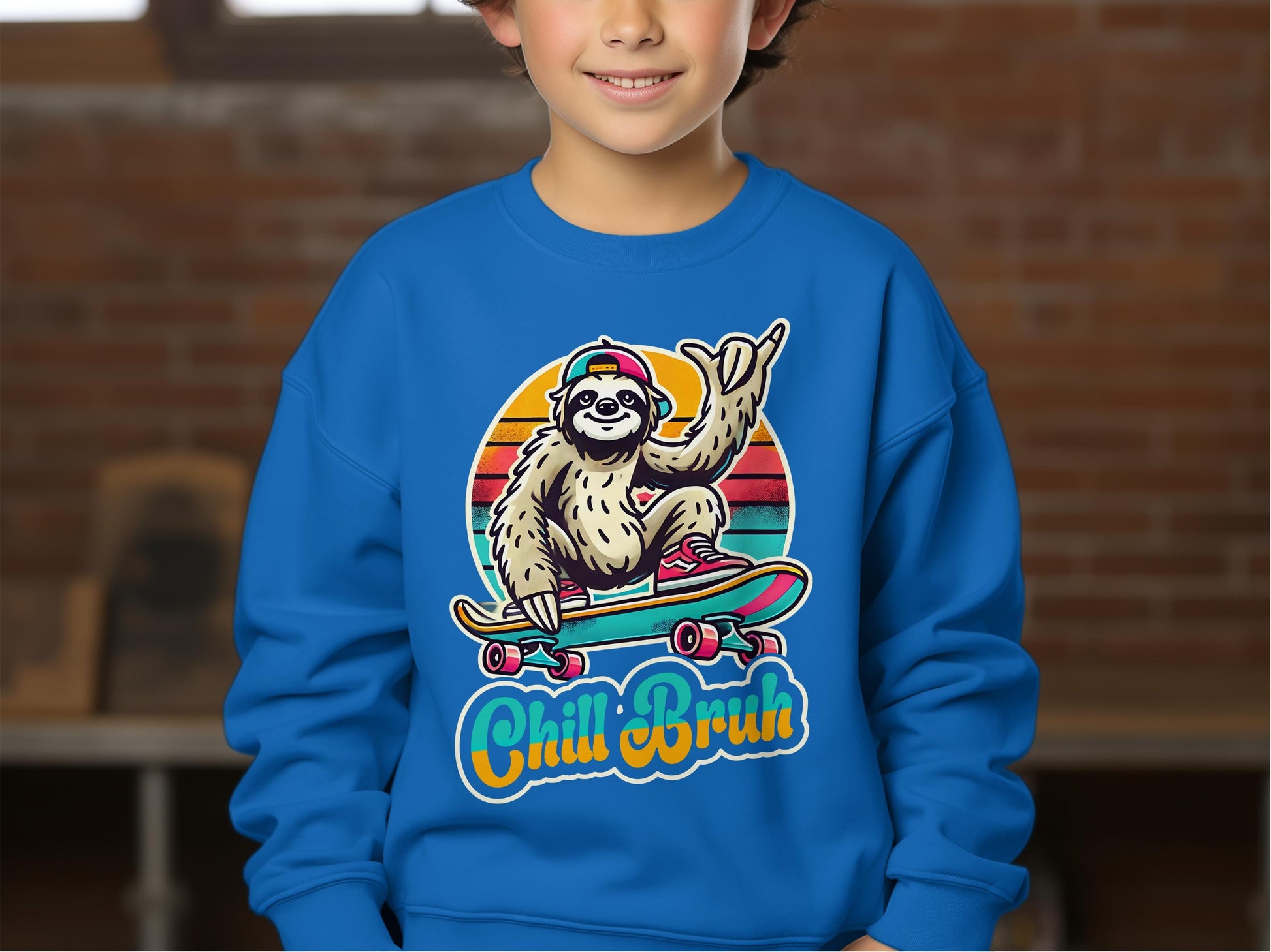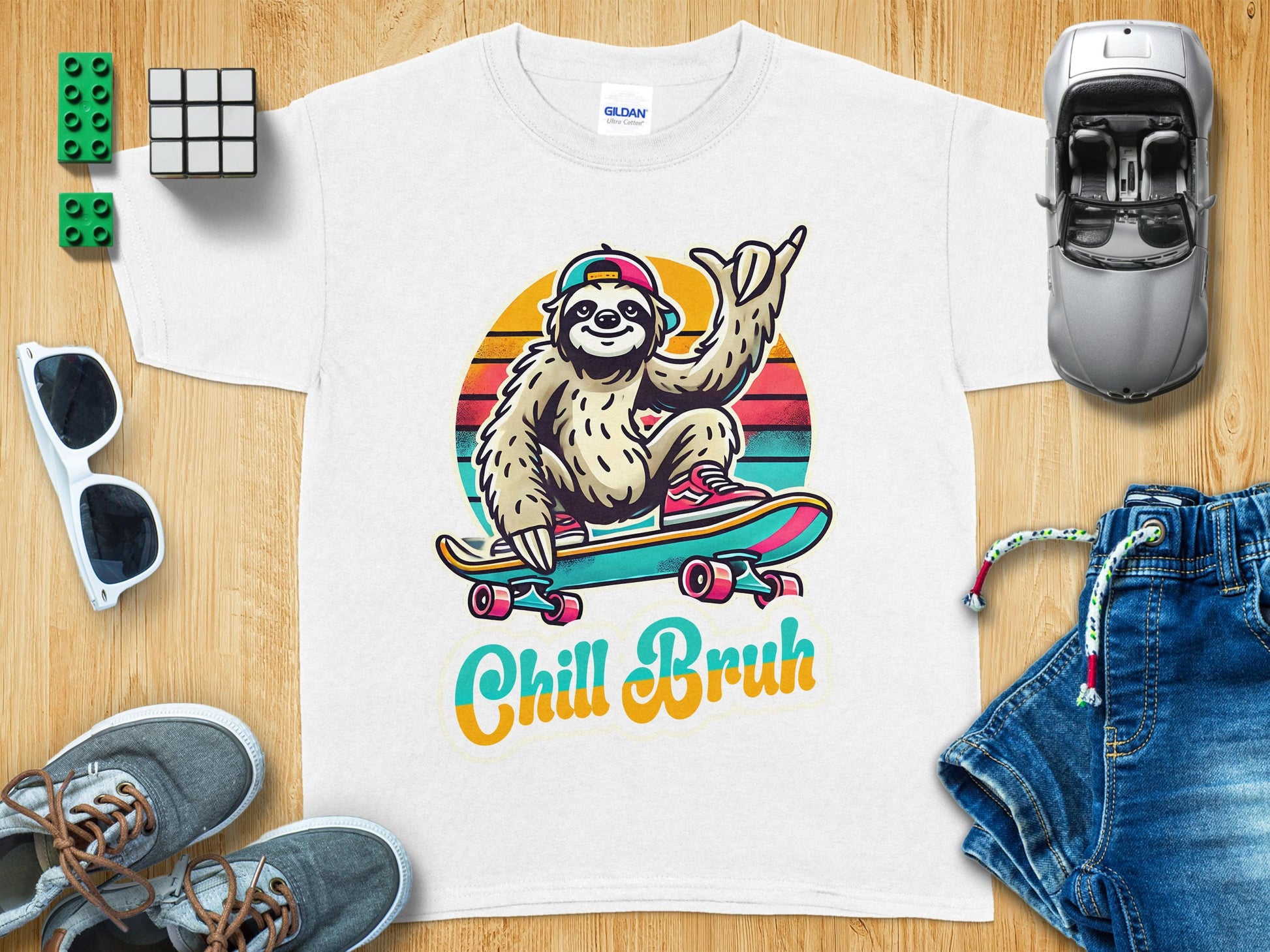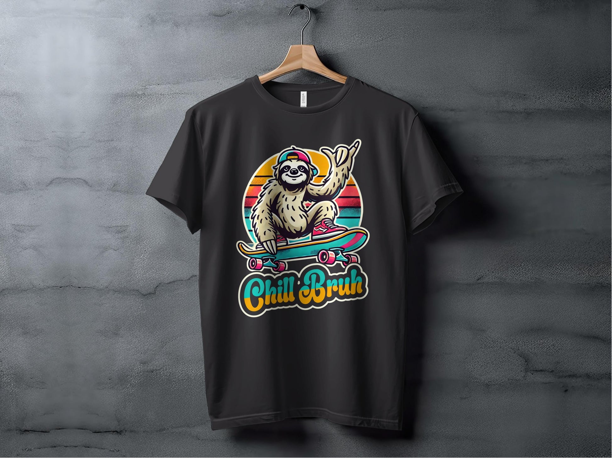 Embrace your chill vibes with this funny sloth "Chill Bruh" skateboard graphic tee. Featuring a cool retro design, this t-shirt is perfect for adding a trendy touch to your wardrobe. Ideal for skaters, sloth lovers, and those who just want to relax in style. This unique shirt combines humor and style, making it a great gift or a fun addition to your own collection. Wear it to show off your laid-back attitude and love for cool graphics.