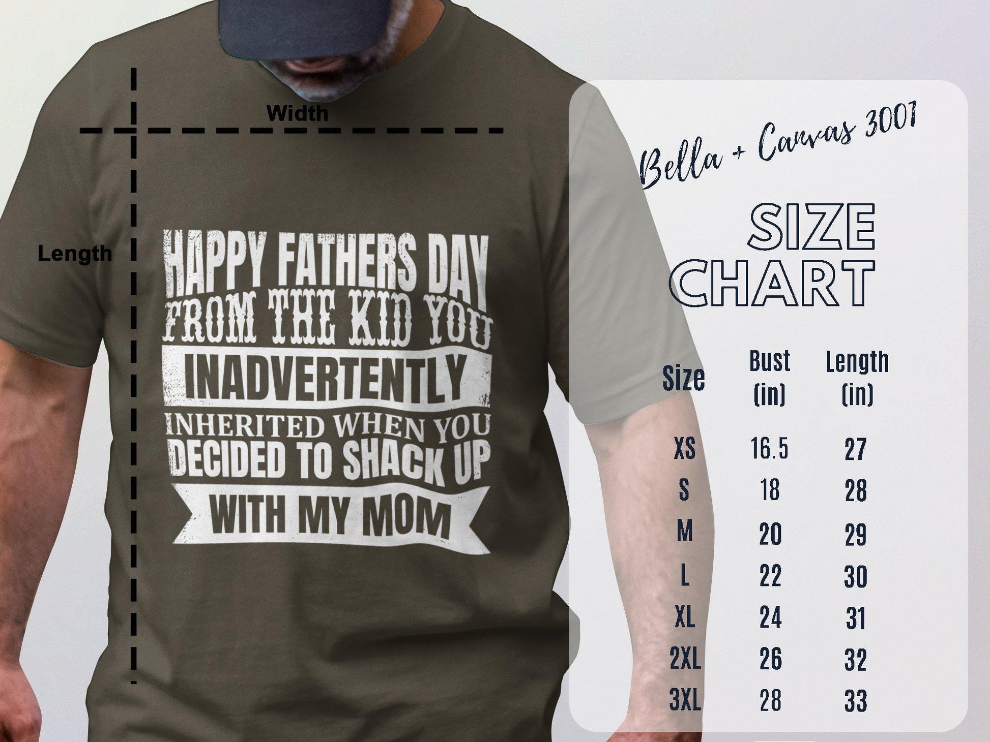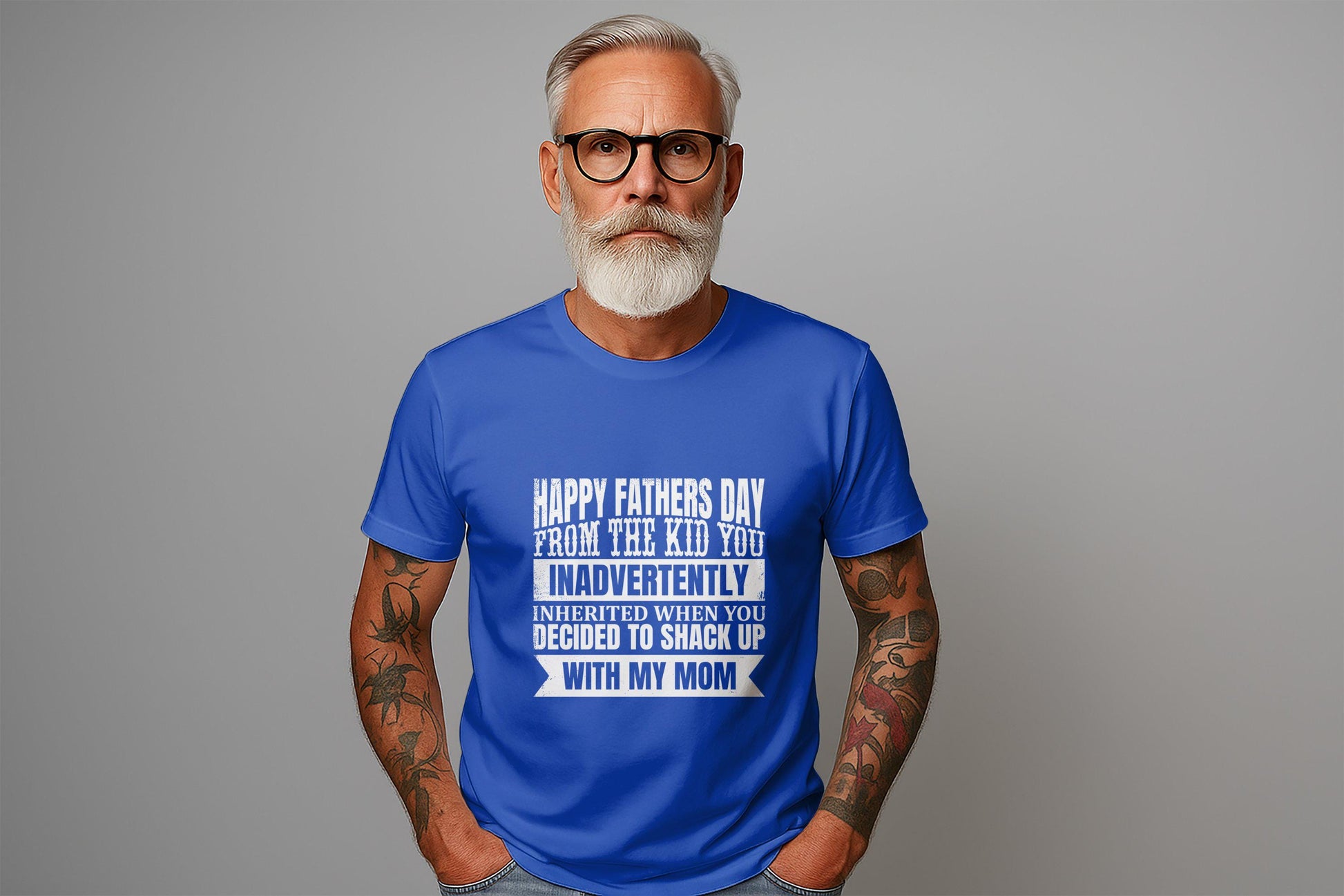 Looking for the perfect Fathers Day gift or a funny t-shirt for dad? This "Happy Fathers Day From The Kid You Inadvertently Inherited When You Decided To Shack Up With My Mom" T-Shirt is the ideal choice! 🎉 Show your love and appreciation with a humorous twist this Fathers Day.