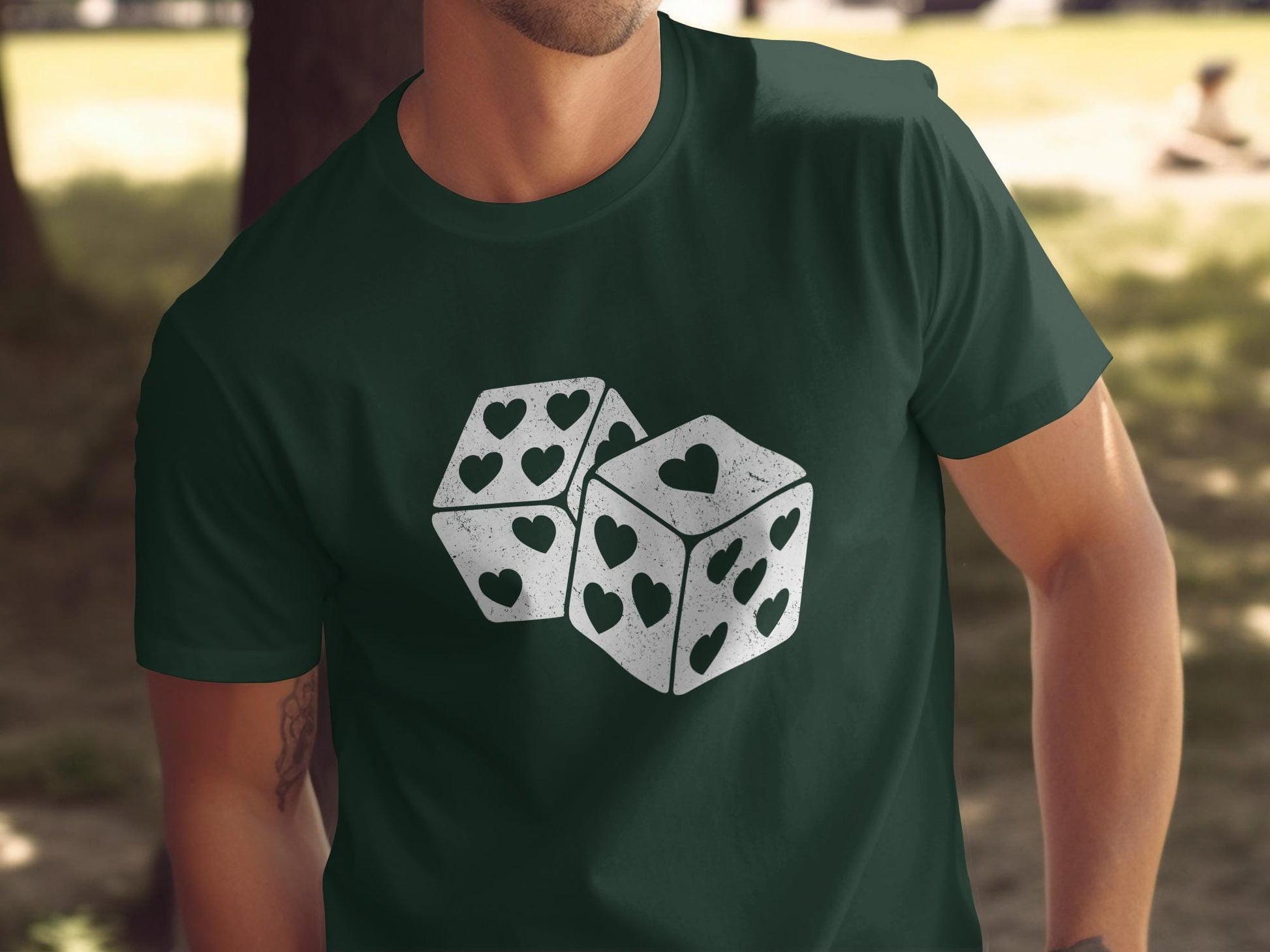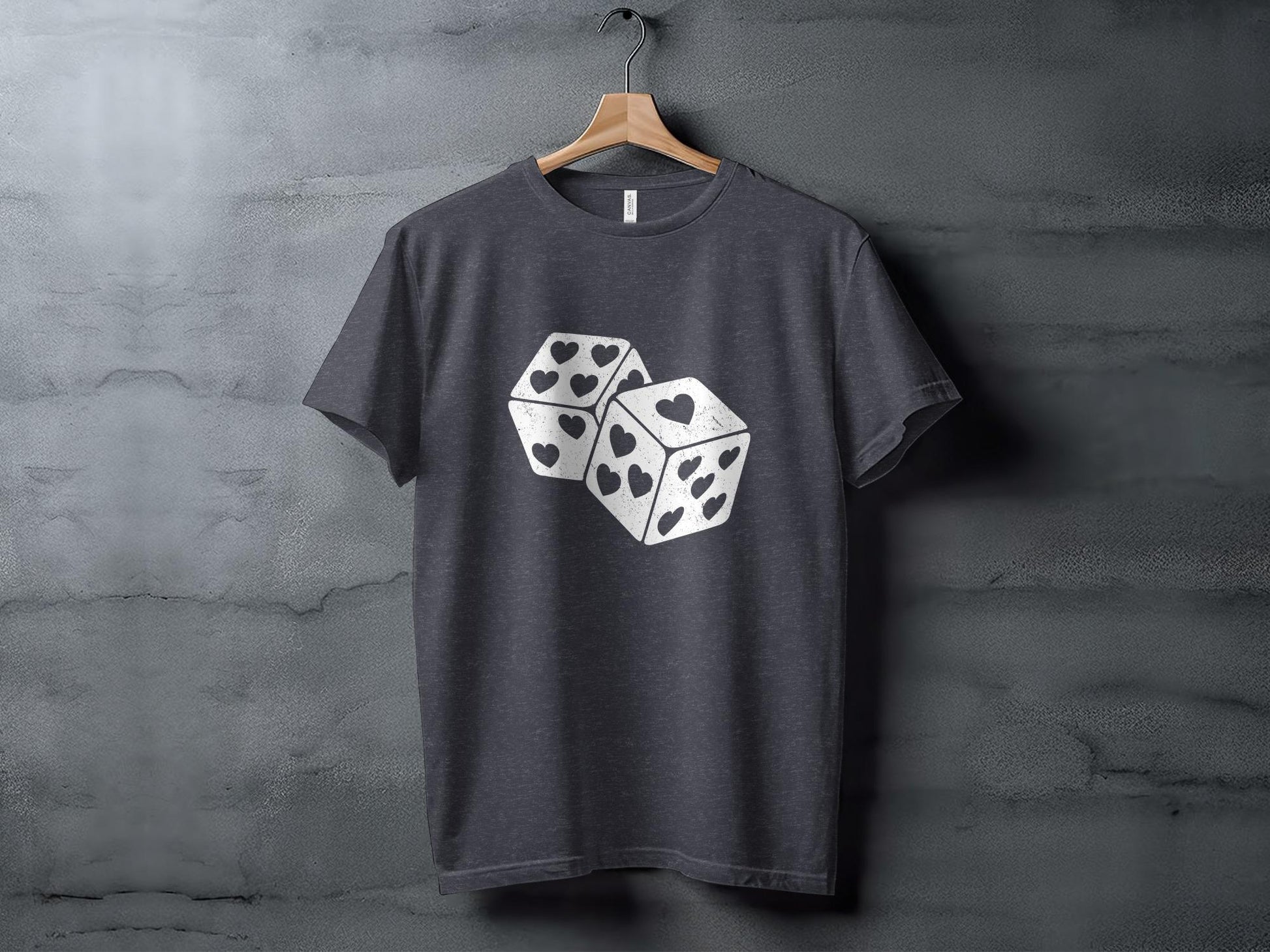 Roll the dice on love with this unique Heart Dice T-Shirt! ❤️ Featuring a pair of dice with hearts instead of numbers, this shirt is perfect for Valentine's Day, anniversaries, or just showing your love for games of chance. Get your lucky dice tee today and spread the love! ✨