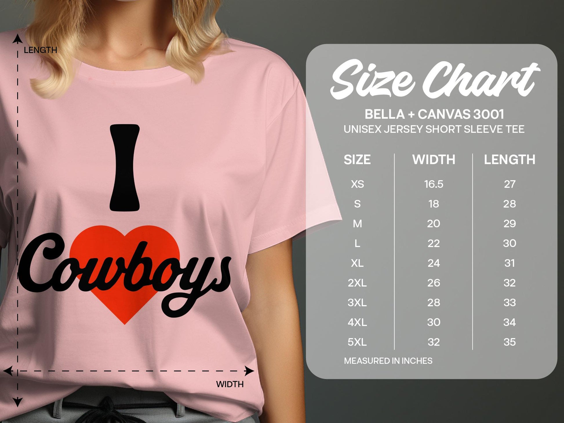 Show your love for the Cowboys with this stylish T-Shirt! Perfect for game days, casual wear, or as a gift for the Cowboys fan in your life. This design features a bold "I ❤️ Cowboys" graphic, showcasing your team spirit. Get yours today and wear your passion with pride! 🏈🌟