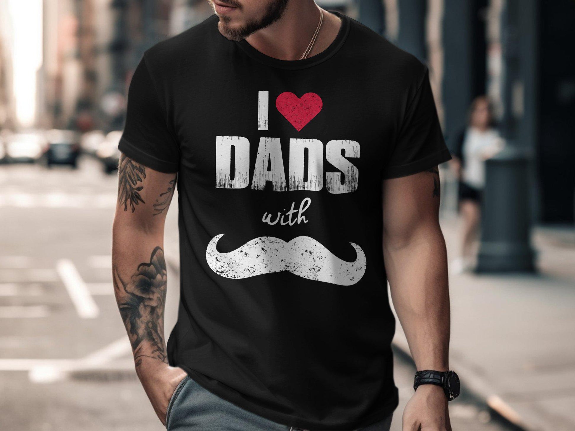 I Love Dads T-Shirts, Heart and Mustache Tee, Gift for Dad, Fathers Day Tee, Unique T-Shirts, Dad T-Shirts, Trendy Tees, Stylish Dad Gift