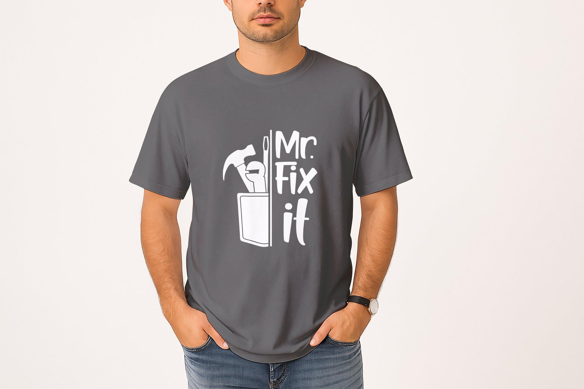 Looking for a funny and unique T-Shirts? 😎 This Mr Fix It design is perfect for anyone who loves home improvement, DIY projects, or just being a handyman around the house. 💪 Get yours today and show off your skills! 🛠️