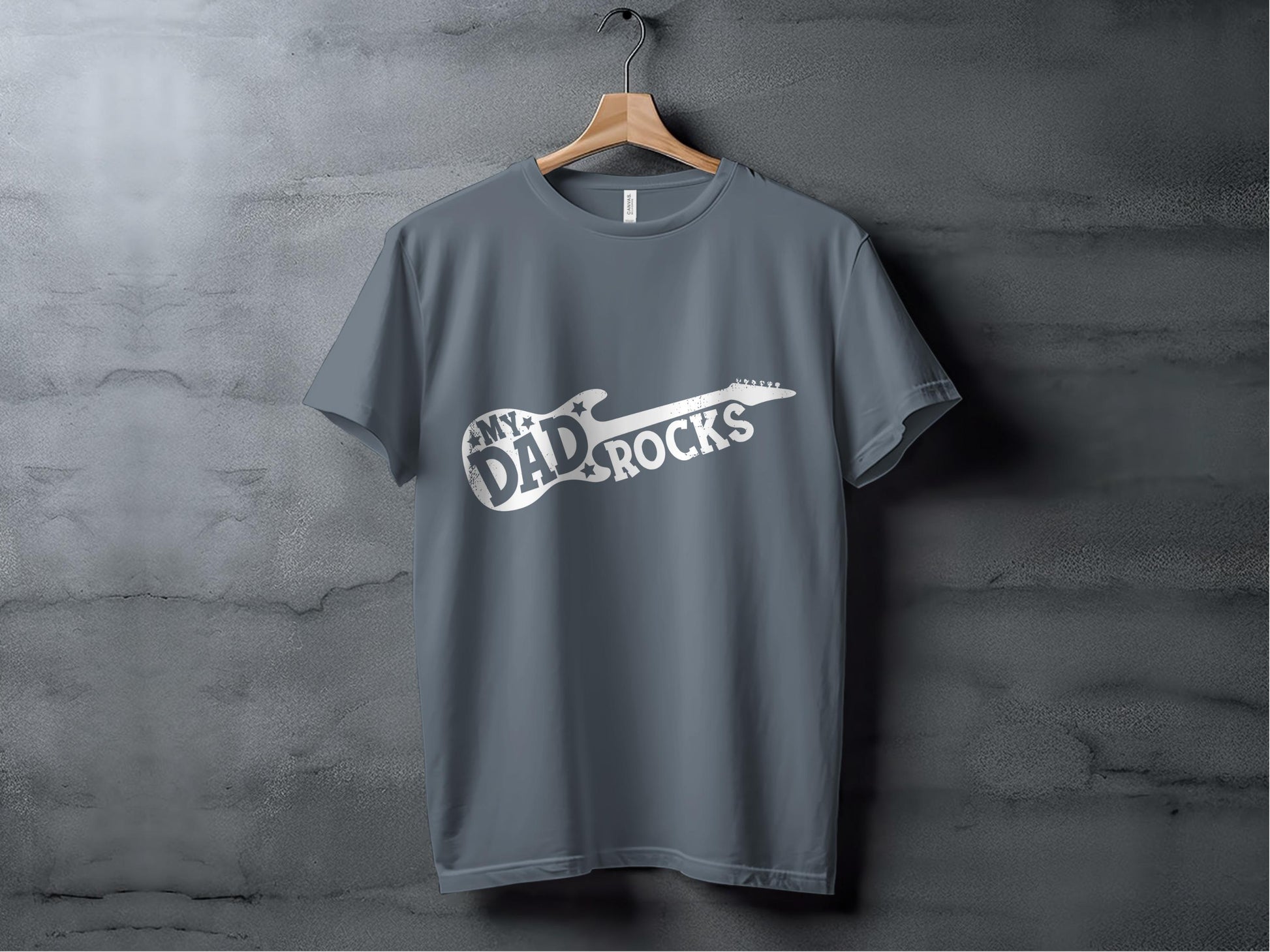 Celebrate the greatest dad in the world with this awesome My Dad Rocks T-Shirts 🎸! Perfect for Fathers Day, birthdays, or just because, this design showcases a cool guitar graphic with the words My Dad Rocks. Show your dad how much you appreciate him with a gift that rocks as hard as he does 🤘.