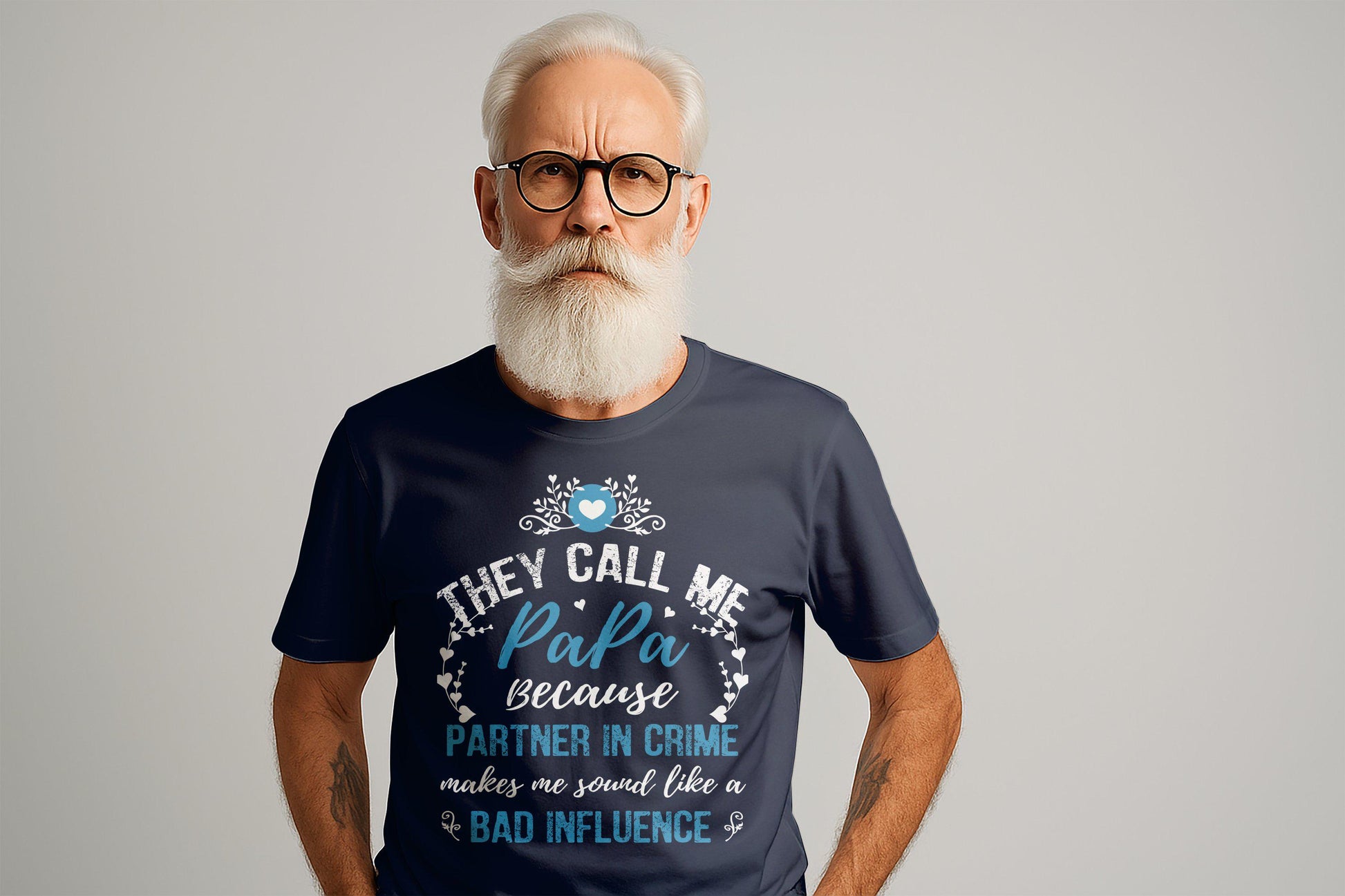 Show your Papa some love with this funny and unique T-shirt! 🎉 Perfect for the Papa who is also your partner in crime and a bit of a bad influence. This is a fantastic gift idea for Dad, grandpas, or any father figure in your life. Celebrate Fathers Day with a gift that brings laughter and shows appreciation. This T-shirt is sure to become a favorite! 🎁