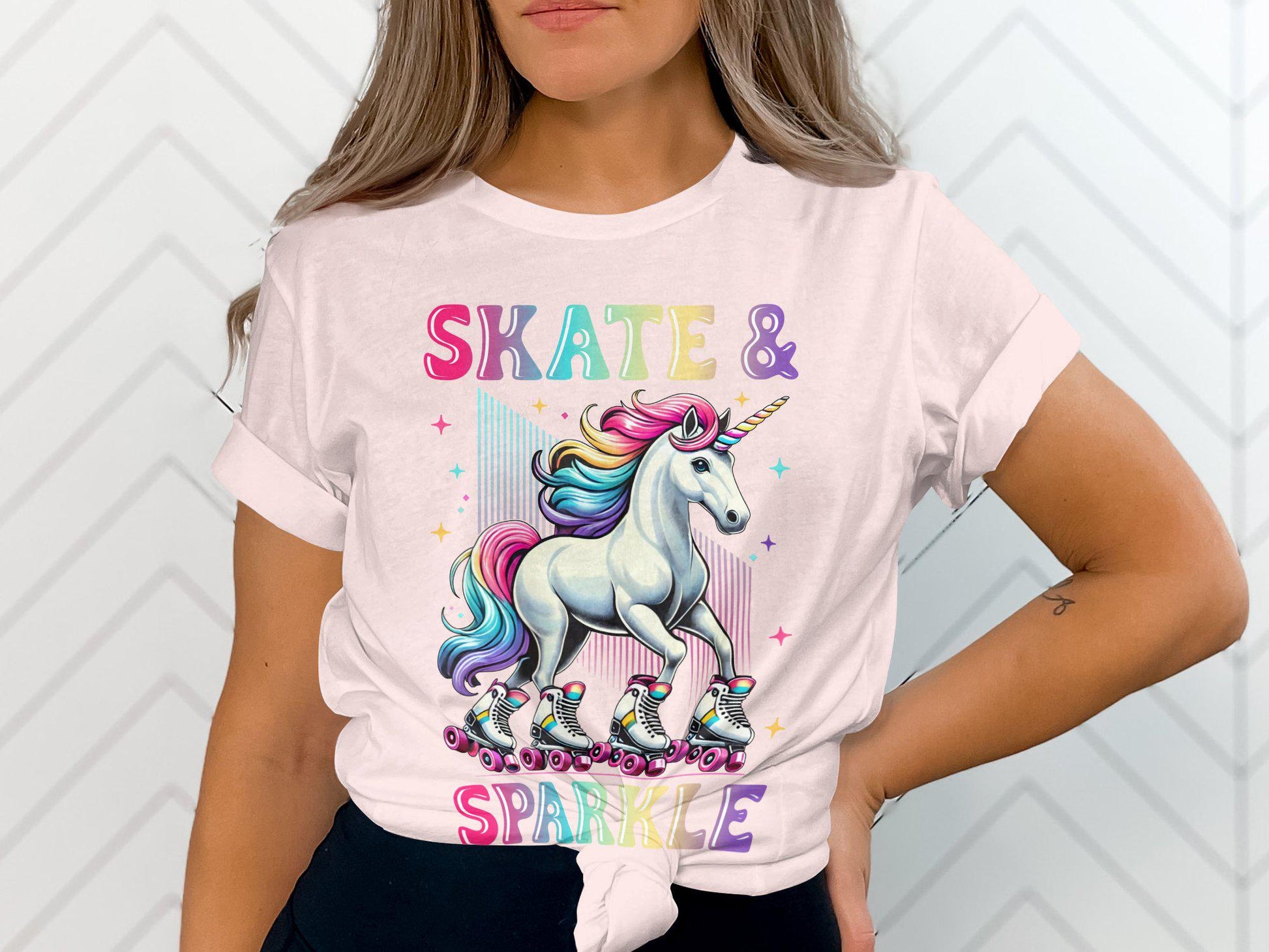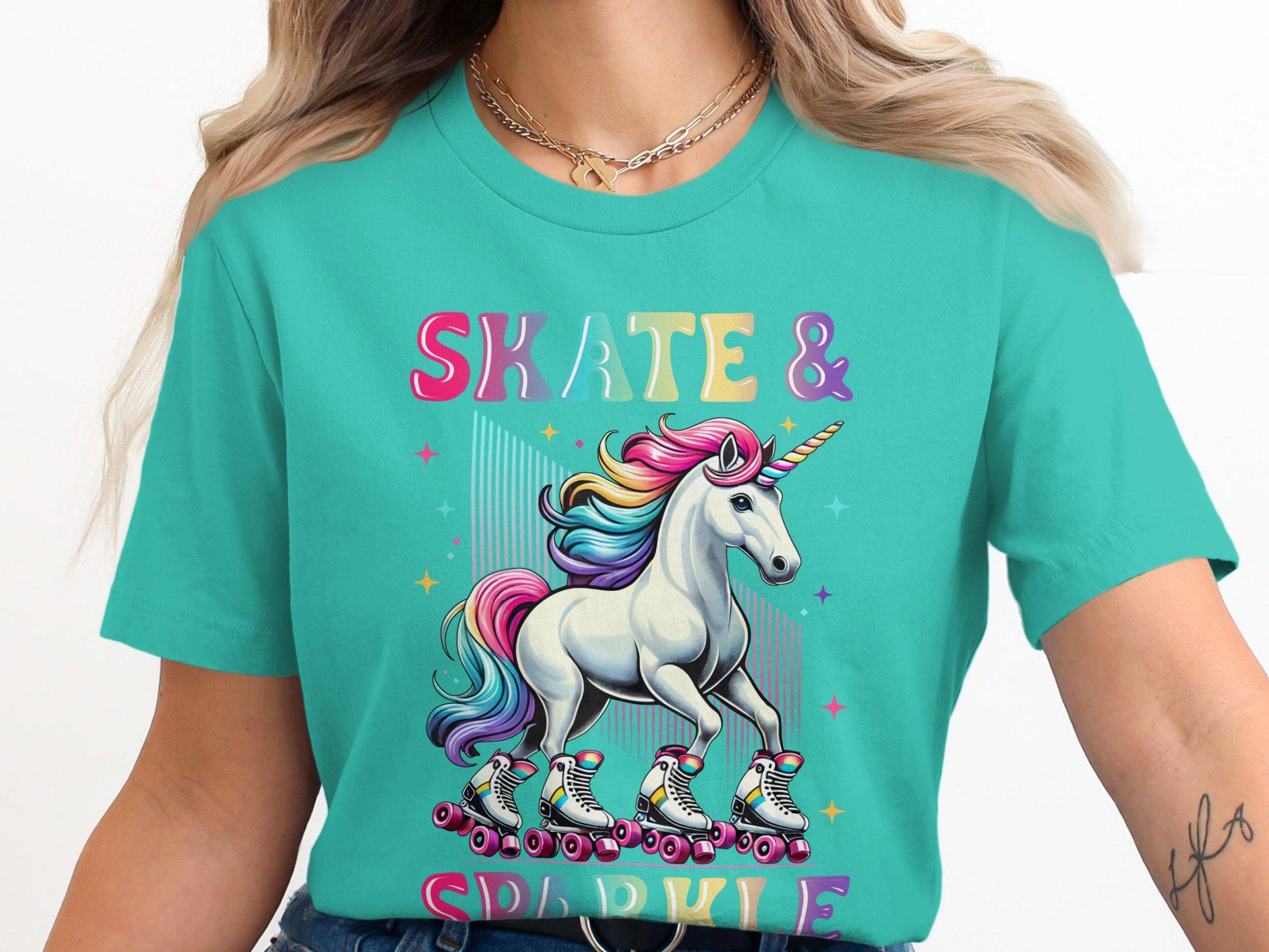 Skate & Sparkle Unicorn Shirt: Colorful Roller Skate Graphic Tee