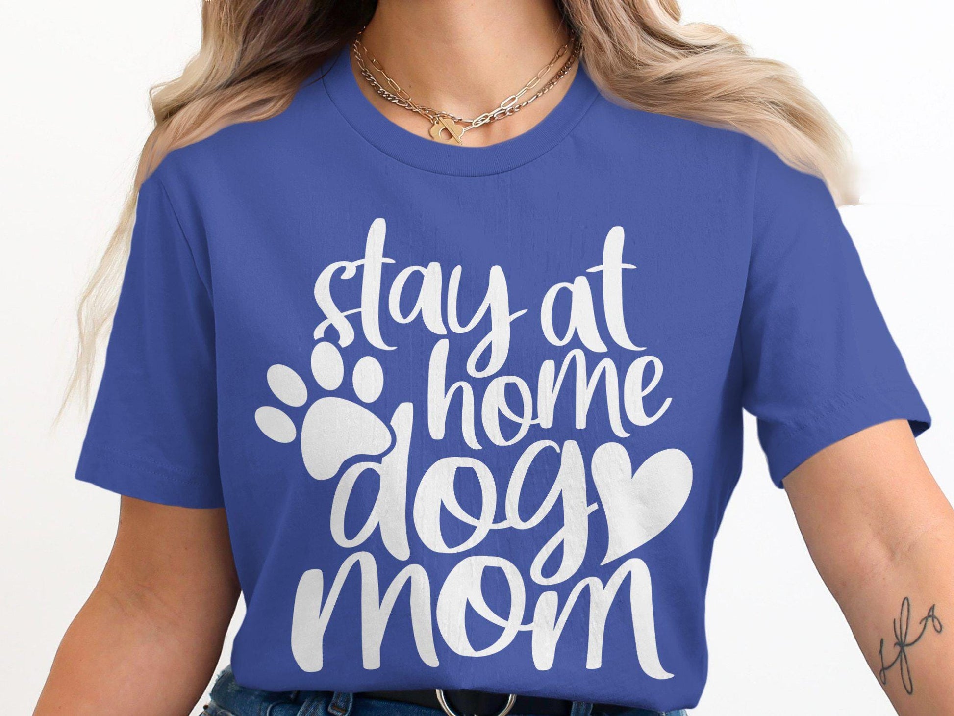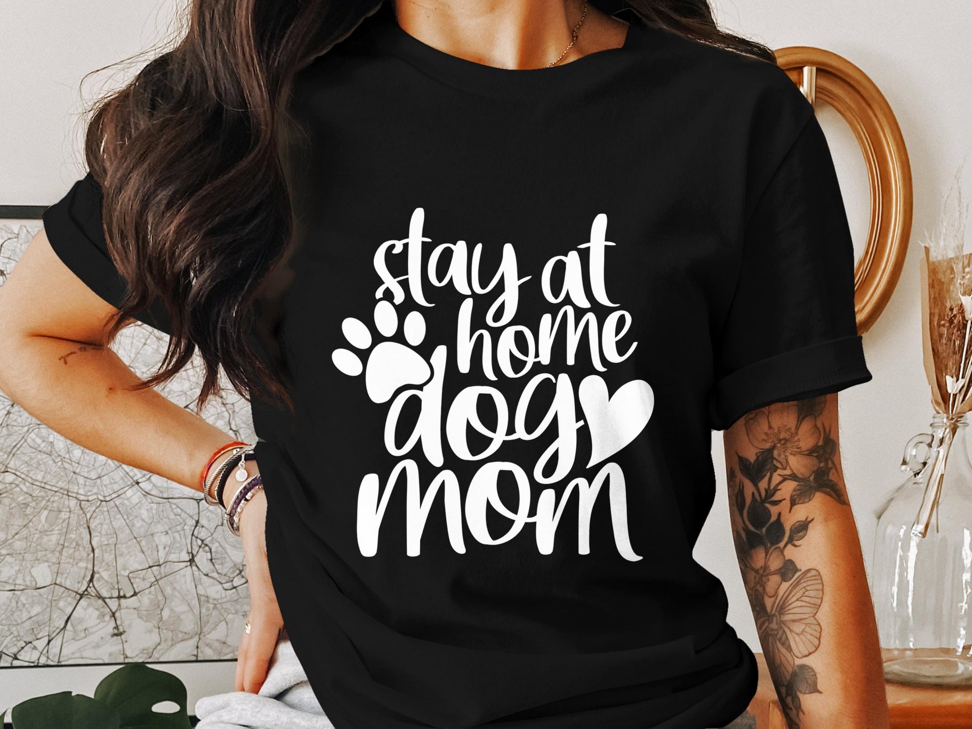 Stay At Home Dog Mom T-Shirts, Dog Lover T-Shirts, Gift for Mom, Mother's Day, Cute Dog Design, Pet Owner Tees, Dog Paw T-Shirts