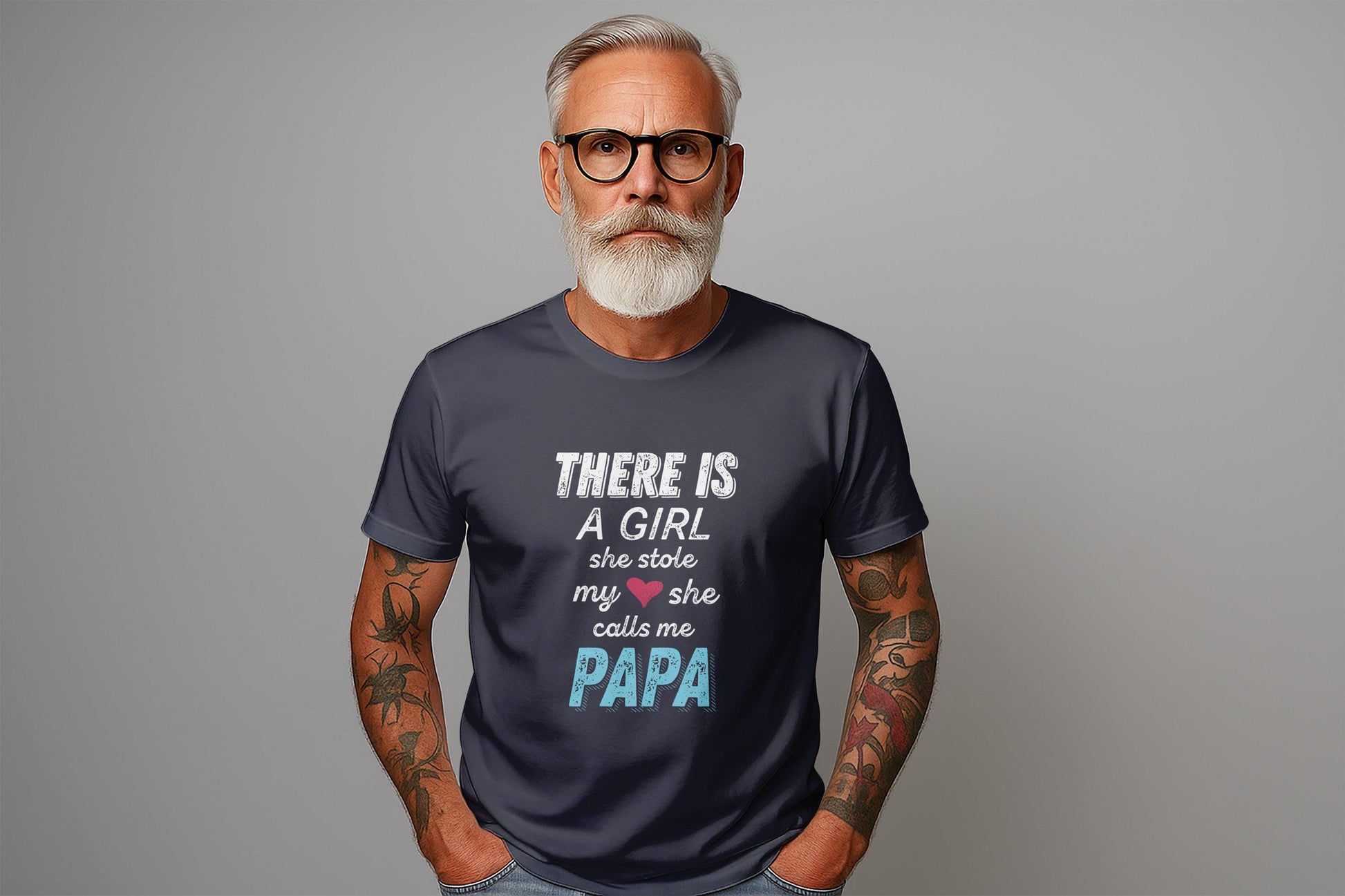 Celebrate the special bond between a daughter and her Papa with this heartwarming T-Shirts! Perfect for Father's Day, birthdays, or just because. This design features the sweet message "There is a Girl She Stole My Heart She Calls Me Papa" 💖. Show your Papa some love with this thoughtful and stylish T-Shirts!